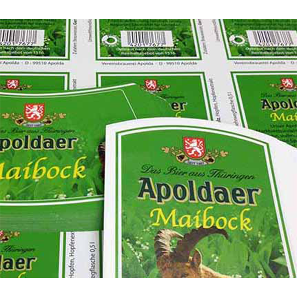 Aufkleber und Etiketten (auch individuelle Kontur) auf Haftpapier oder PE-Folie,